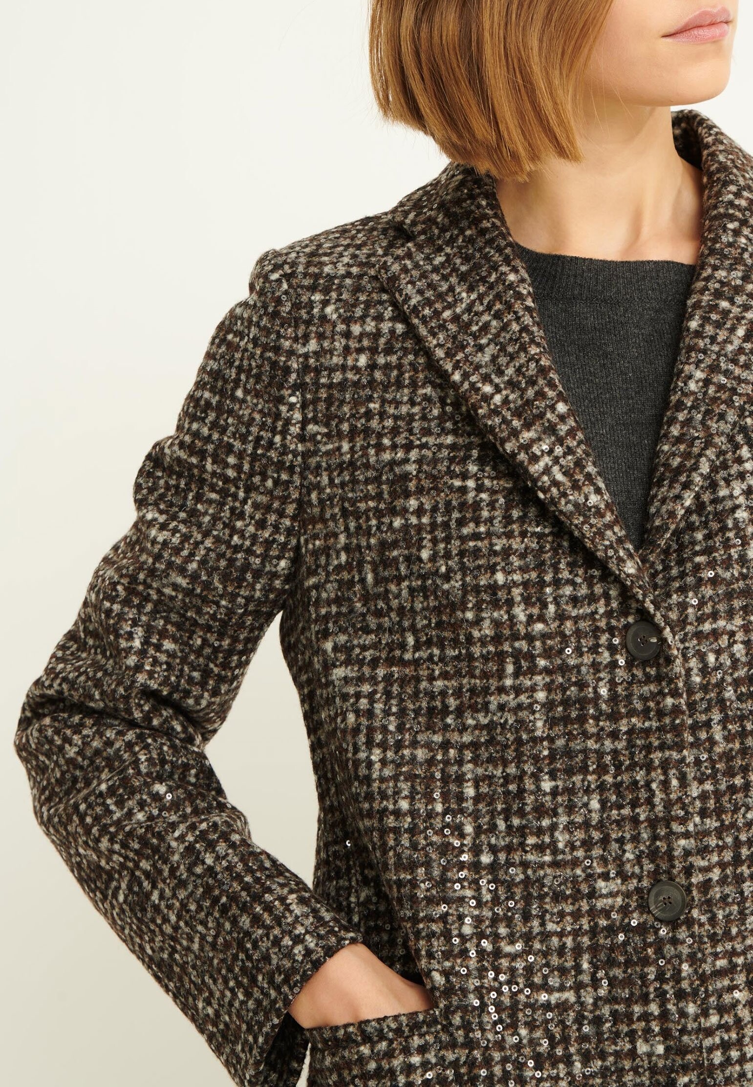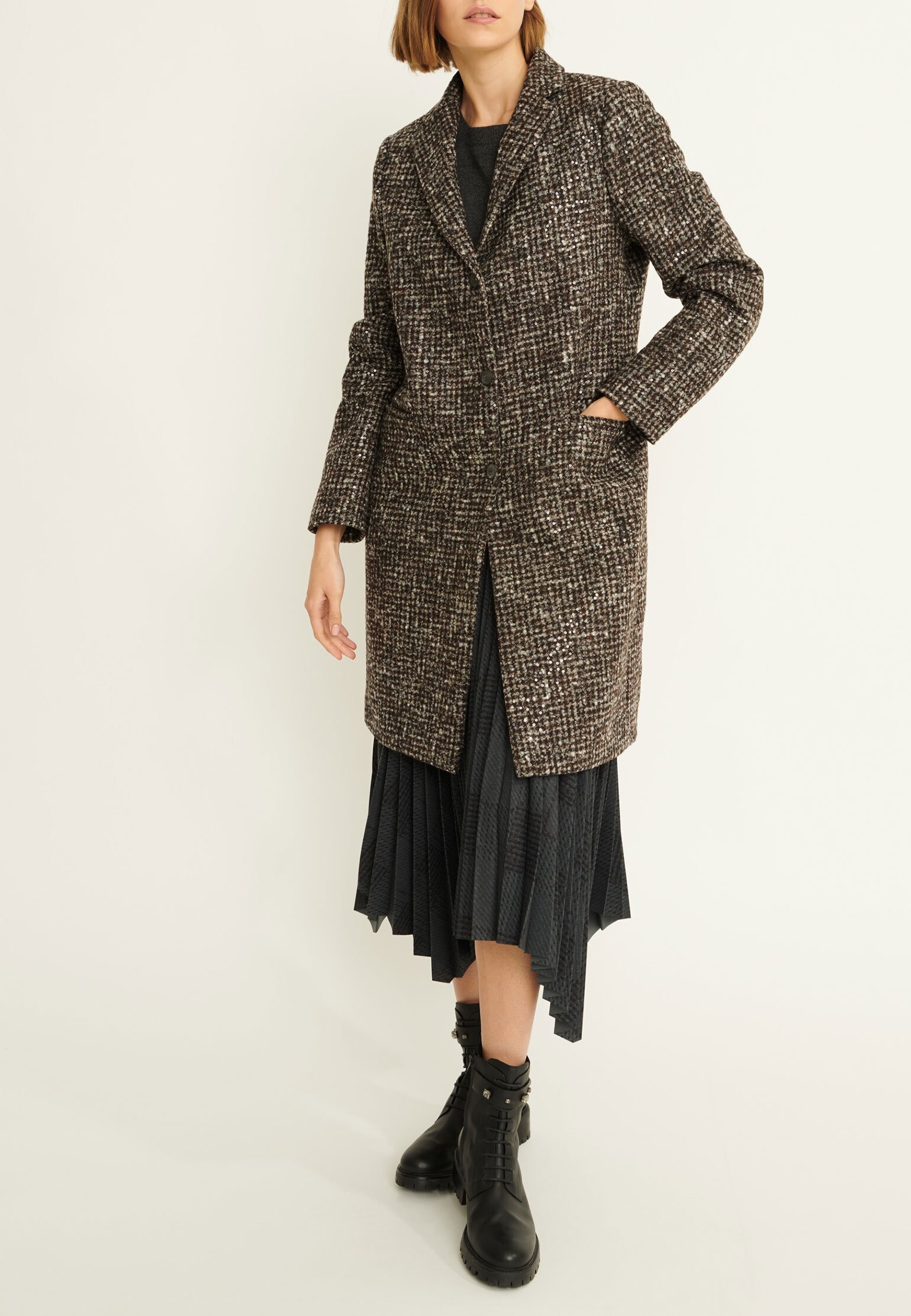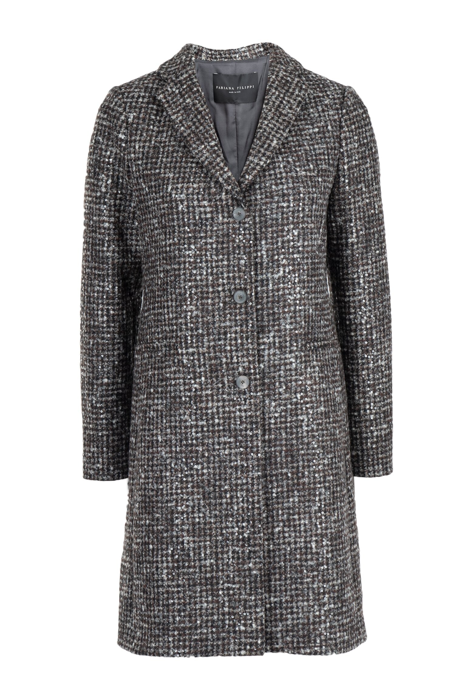 Пальто от бренда Fabiana Filippi — это роскошное воплощение стиля ретро-шик для женщин, ценящих элегантность и комфорт. Оно выполнено из твида, сочетающего отборную шерсть мериноса, альпаку и хлопок, что гарантирует невероятные тактильные ощущения и высокое качество. Пальто представлено в кофейном цвете и имеет прямой крой с широкими лацканами, придающими модели исключительную утонченность. Дизайн разработан в Италии, что подчеркивает его изысканность и безупречный вкус. Шлица добавляет элемент практичности, обеспечивая свободу движений. Это пальто станет идеальным дополнением вашего осенне-зимнего гардероба.